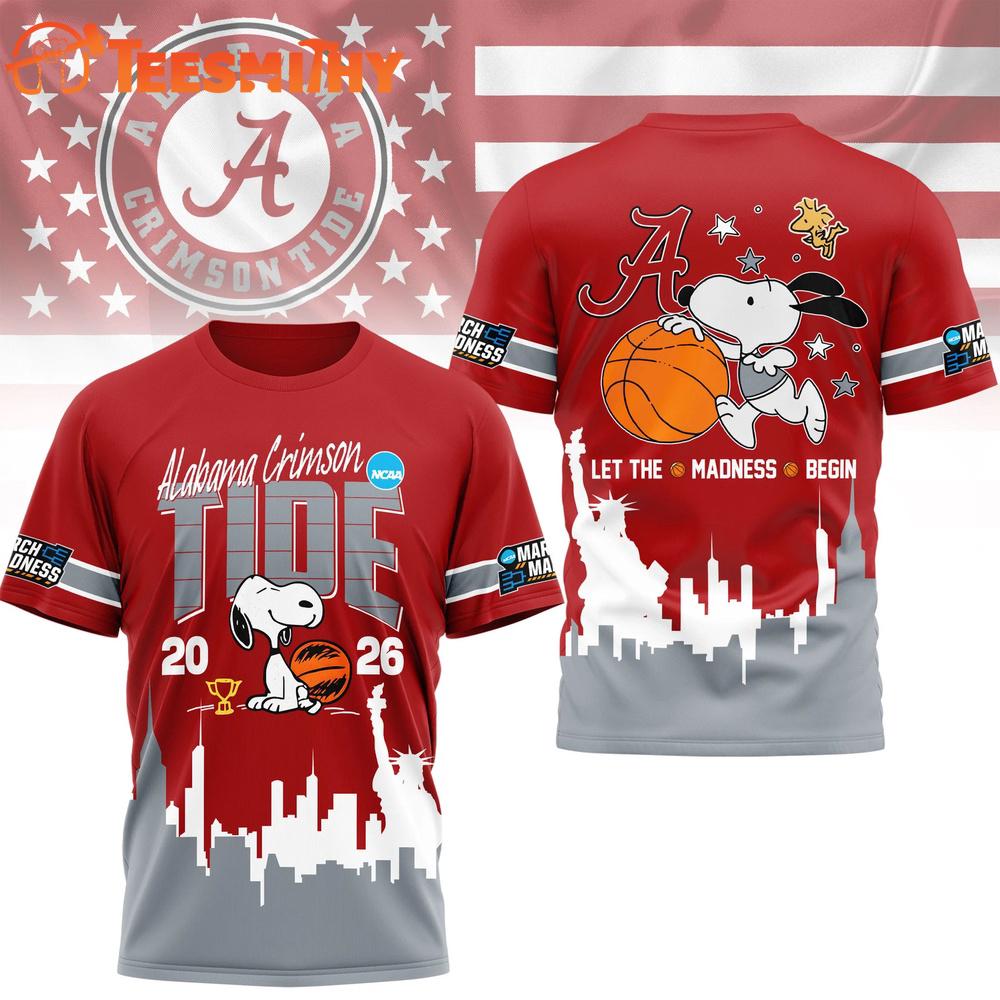 Alabama Crimson Tide 2026 NCAA March Madness x Snoopy New Design 3D Shirt The 3D Shirt is a fashion statement that goes beyond the ordinary. Using advanced printing technology, it brings designs to life with depth and vividness. Crafted from high-quality materials, it offers comfort and durability. The three-dimensional graphics create a captivating effect that’s perfect for casual wear or making a bold statement.