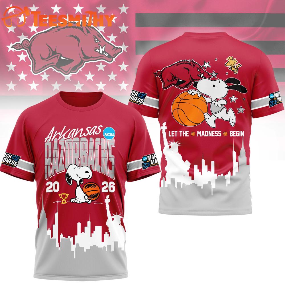 Photos Of Arkansas Razorbacks 2026 NCAA March Madness x Snoopy New Design 3D Shirt