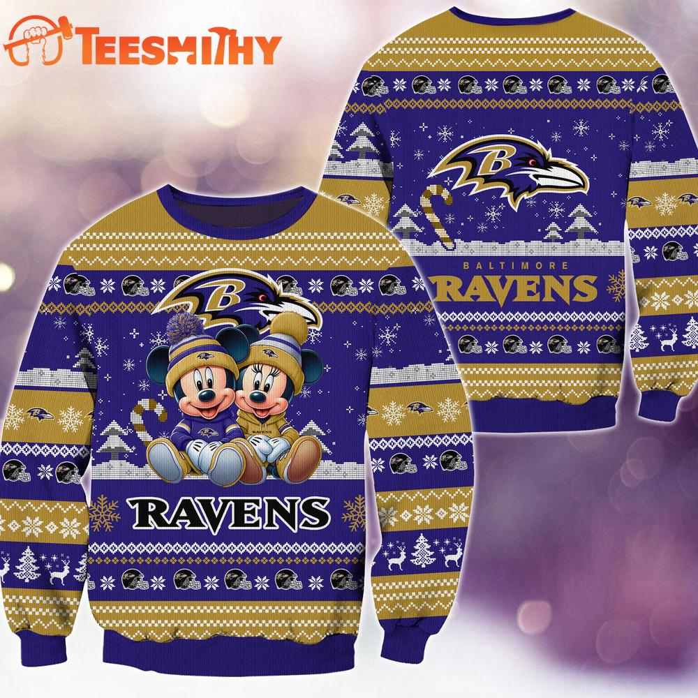 Product details: Baltimore Ravens NFL Mickey Minnie Ugly Christmas Sweater