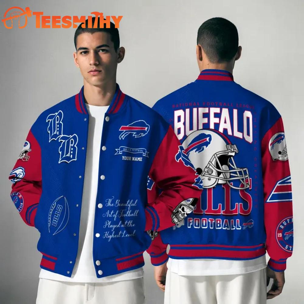 Buffalo Bills NFL Chasing Greatness Personalized Varsity Jacket Step up your style game with the Baseball Jacket, a timeless piece that blends classic design with modern flair. Crafted from high-quality, durable materials, this jacket features a sleek, athletic silhouette with contrasting stripes on the cuffs and collar for a nod to vintage baseball aesthetics. The soft, insulated lining ensures warmth and comfort, making it ideal for cooler days. With its versatile design, the Baseball Jacket effortlessly complements both casual and semi-formal outfits, making it a staple for any wardrobe. Elevate your everyday look with the iconic charm and enduring style of the Baseball Jacket.
