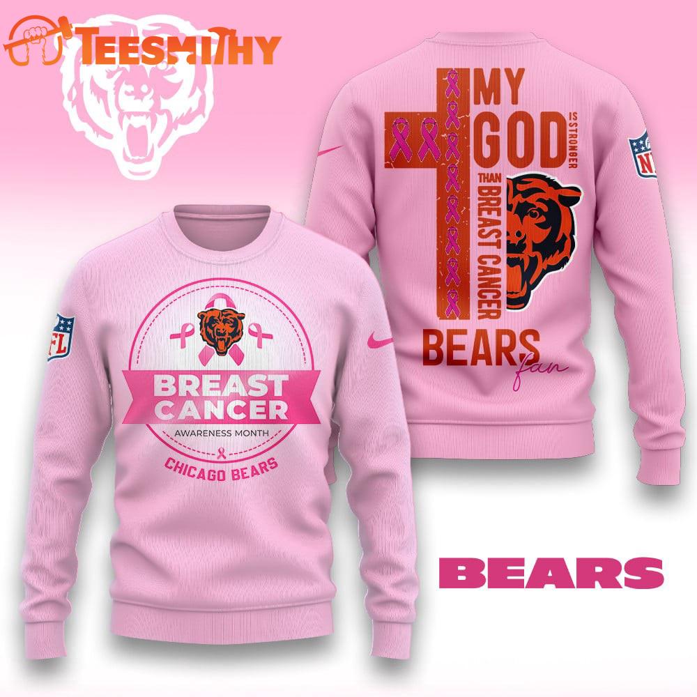 Product details: Chicago Bears 2025 NFL My God Is Stronger Than Breast Cancer Chritmas Sweater