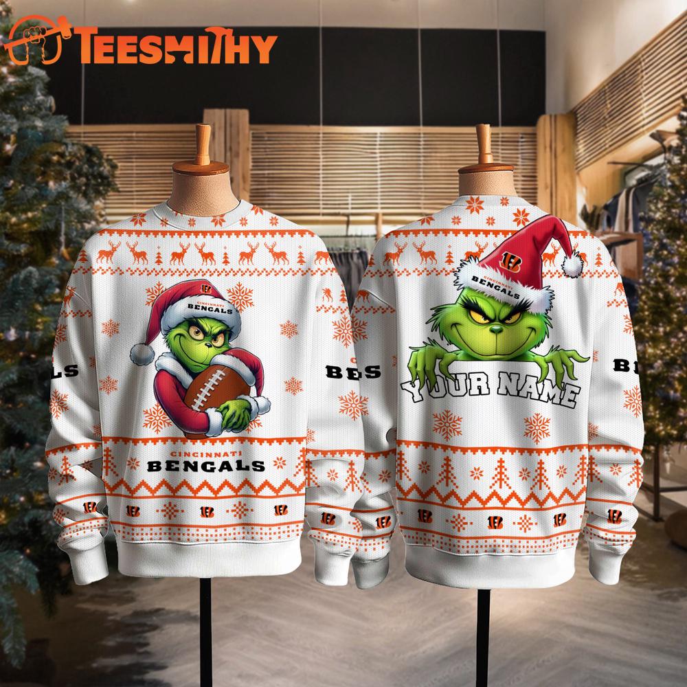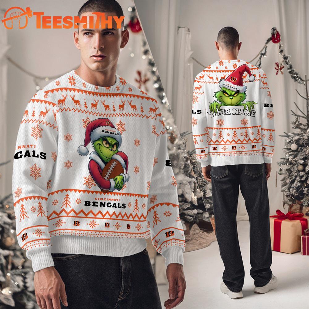 Photos Of Cincinnati Bengals NFL Grinch Santa Hats Ugly Christmas Sweater