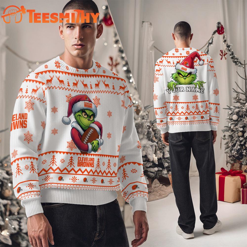 Photos Of Cleveland Browns NFL Grinch Santa Hats Ugly Christmas Sweater