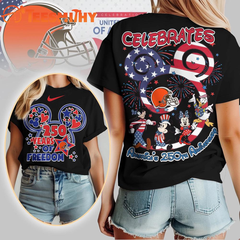 Photos Of Cleveland Browns NFL Mickey Celebrates America 250th Anniversary All Over Print T Shirt