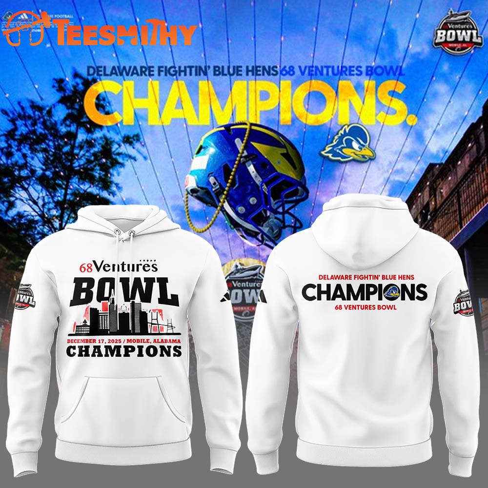 Delaware Fightin’ Blue Hens Football 68 Ventures Bowl Champions 2025 Hoodie The 3D Shirt is a fashion statement that goes beyond the ordinary. Using advanced printing technology, it brings designs to life with depth and vividness. Crafted from high-quality materials, it offers comfort and durability. The three-dimensional graphics create a captivating effect that’s perfect for casual wear or making a bold statement.