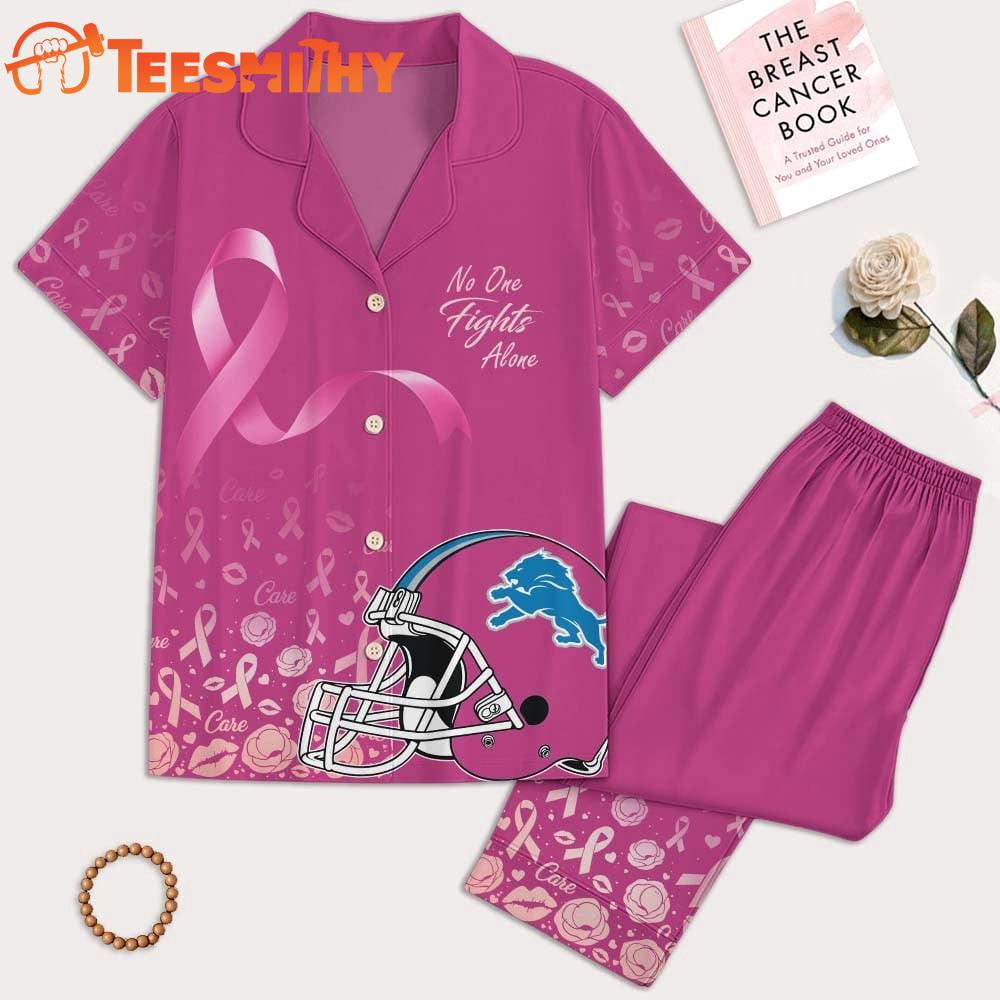 Photos Of Detroit Lions 2025 NFL Breast Cancer October Short Sleeve Satin Pajama Set