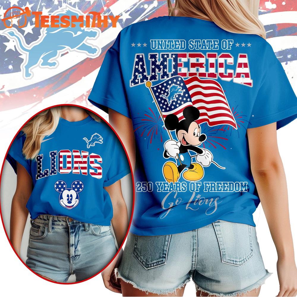 Photos Of Detroit Lions NFL Mickey America Flag Freedom 250 Years 3D T Shirt