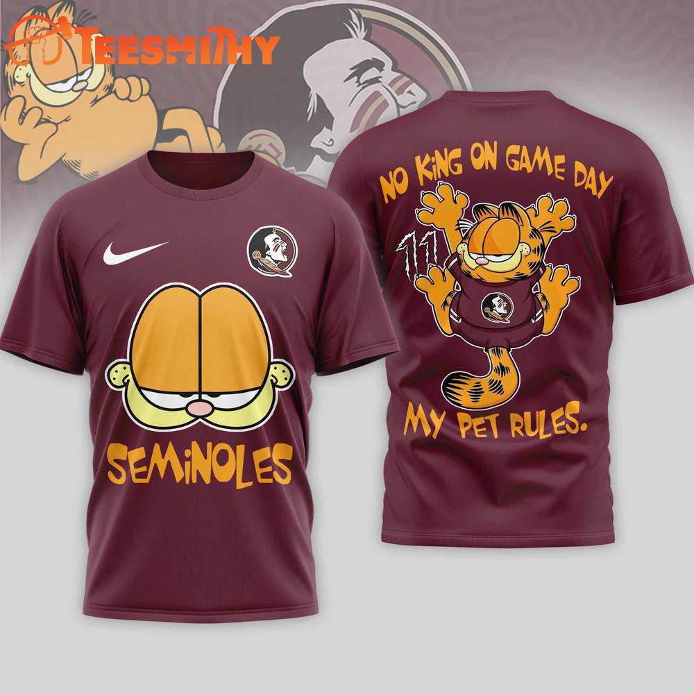 Florida State Seminoles Garfield NCAA No King On Game Day 3D T Shirt The 3D Shirt is a fashion statement that goes beyond the ordinary. Using advanced printing technology, it brings designs to life with depth and vividness. Crafted from high-quality materials, it offers comfort and durability. The three-dimensional graphics create a captivating effect that’s perfect for casual wear or making a bold statement.