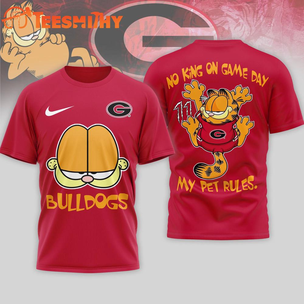 Georgia Bulldogs Garfield NCAA No King On Game Day 3D T Shirt The 3D Shirt is a fashion statement that goes beyond the ordinary. Using advanced printing technology, it brings designs to life with depth and vividness. Crafted from high-quality materials, it offers comfort and durability. The three-dimensional graphics create a captivating effect that’s perfect for casual wear or making a bold statement.