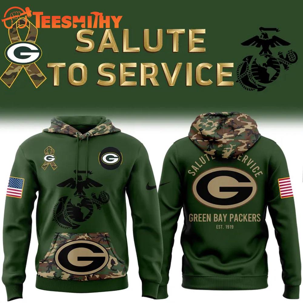 Photos Of Green Bay Packers 2025 NFL Salute to Service Marines 250 Limited Edition Hoodie