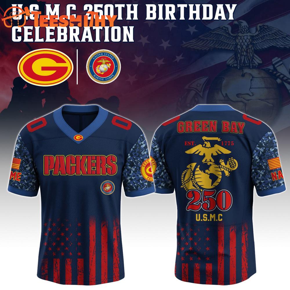 Green Bay Packers x USMC 250th Birthday Special Edition Custom Football Jersey Show your team spirit with our custom Football Jersey! Made from high-quality, breathable fabric for maximum comfort and performance. Perfect for game day or casual wear. Personalize with your name, number, or favorite team. A must-have for any football fan or sports enthusiast.