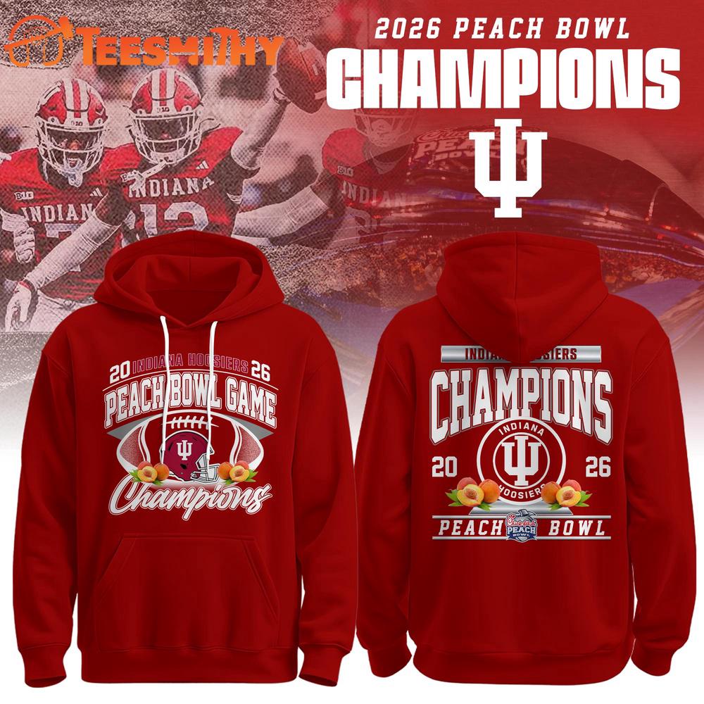 Photos Of Indiana Hoosiers NCAA 2026 Peach Bowl Champions Limited Edition Red Hoodie