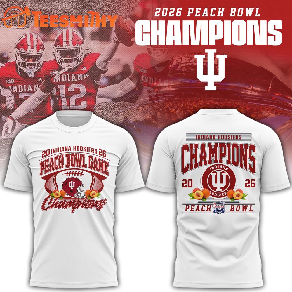 Photos Of Indiana Hoosiers NCAA 2026 Peach Bowl Champions Limited Edition White T Shirt