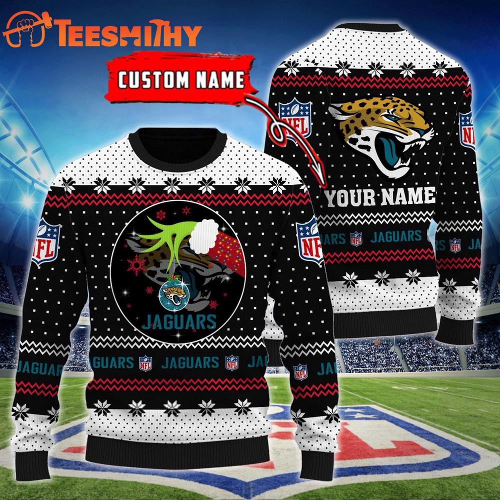 Photos Of Jacksonville Jaguars NFL Grinch Hands Personalized Ugly Christmas Sweater