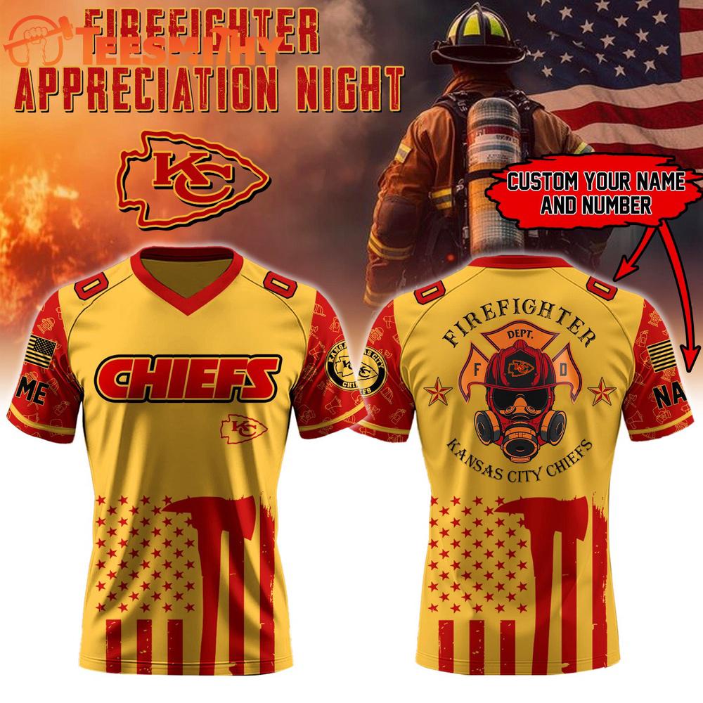 Kansas City Chiefs x Firefighter Appreciation Night Custom Football Jersey Show your team spirit with our custom Football Jersey! Made from high-quality, breathable fabric for maximum comfort and performance. Perfect for game day or casual wear. Personalize with your name, number, or favorite team. A must-have for any football fan or sports enthusiast.