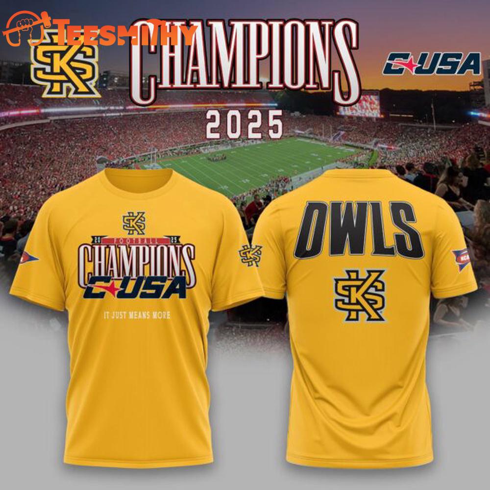 Photos Of Kennesaw State Owls 2025 C-USA Football Conference Champions Yellow T Shirt