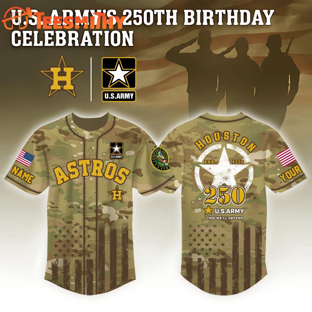 Limited Edition Houston Astros x U.S Army’s 250Th Birthday Celebration Baseball Jersey The ultimate fusion for devoted fans! These unique Jersey Shirt are a must-have for enthusiasts. With premium polyester material, they provide unrivaled comfort and support. Sporting your favorite team’s logo and colors, Jersey Shirt let you showcase team spirit with every step. Perfect as a gift or for yourself, embrace your love for the and experience unmatched style and comfort with Jersey Shirt. Order now and elevate your fan status!