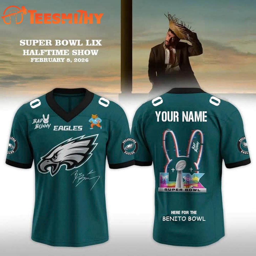 Limited Edition Philadelphia Eagles x Bad Bunny Halftime Show 2026 Customized Football Jersey Show your team spirit with our custom Football Jersey! Made from high-quality, breathable fabric for maximum comfort and performance. Perfect for game day or casual wear. Personalize with your name, number, or favorite team. A must-have for any football fan or sports enthusiast.
