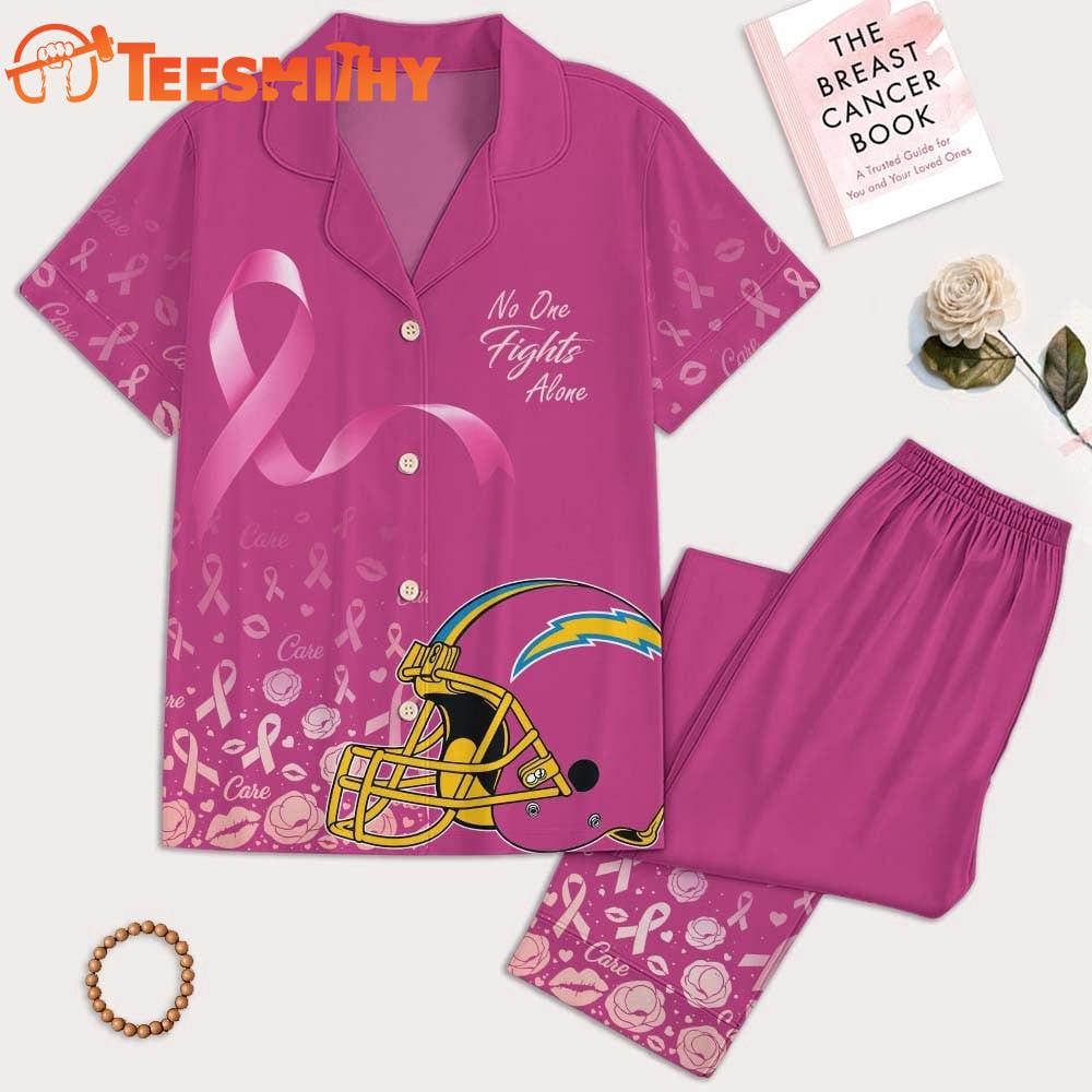 Photos Of Los Angeles Chargers 2025 NFL Breast Cancer October Short Sleeve Satin Pajama Set