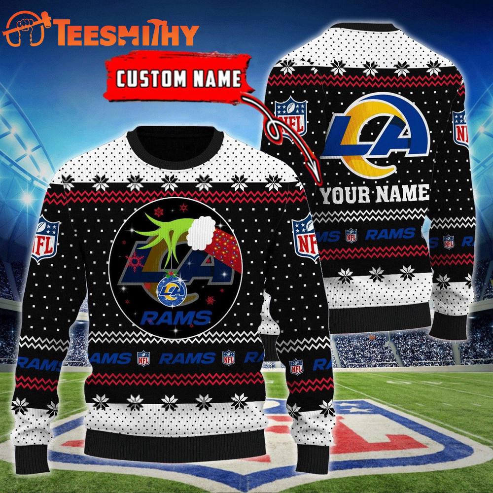 Photos Of Los Angeles Rams NFL Grinch Hands Personalized Ugly Christmas Sweater