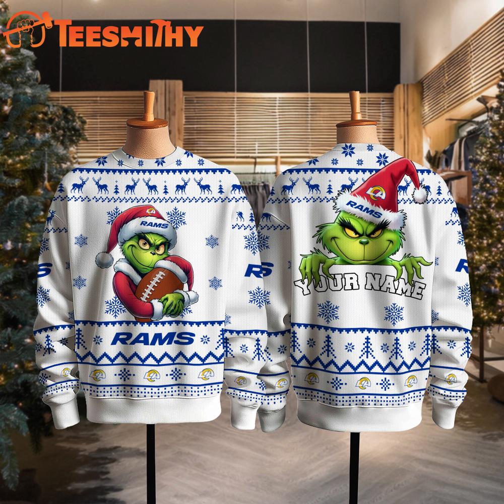 Photos Of Los Angeles Rams NFL Grinch Santa Hats Ugly Christmas Sweater