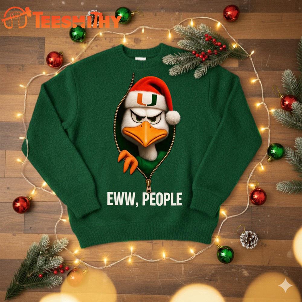 Product details: Miami Hurricanes 2025 NCAA Mascot Eww People Christmas Ugly Sweater