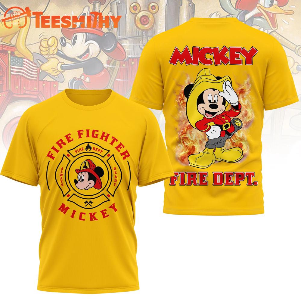 Mickey Mouse Fire Dept Yellow T Shirt The 3D Shirt is a fashion statement that goes beyond the ordinary. Using advanced printing technology, it brings designs to life with depth and vividness. Crafted from high-quality materials, it offers comfort and durability. The three-dimensional graphics create a captivating effect that’s perfect for casual wear or making a bold statement.