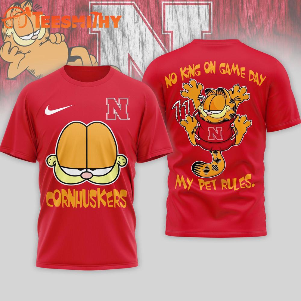 Nebraska Cornhuskers Garfield NCAA No King On Game Day 3D T Shirt The 3D Shirt is a fashion statement that goes beyond the ordinary. Using advanced printing technology, it brings designs to life with depth and vividness. Crafted from high-quality materials, it offers comfort and durability. The three-dimensional graphics create a captivating effect that’s perfect for casual wear or making a bold statement.
