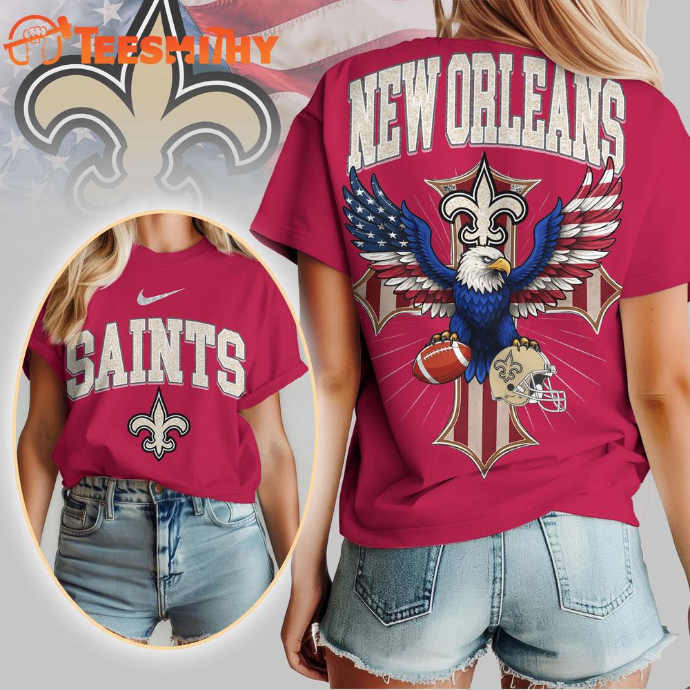 Photos Of New Orleans Saints 2026 NFL Freedom Eagle All Over Print Shirt