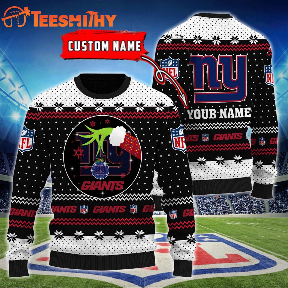 Photos Of New York Giants NFL Grinch Hands Personalized Ugly Christmas Sweater