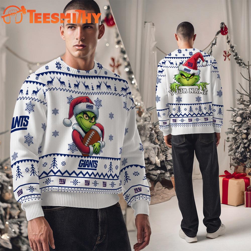 Photos Of New York Giants NFL Grinch Santa Hats Ugly Christmas Sweater