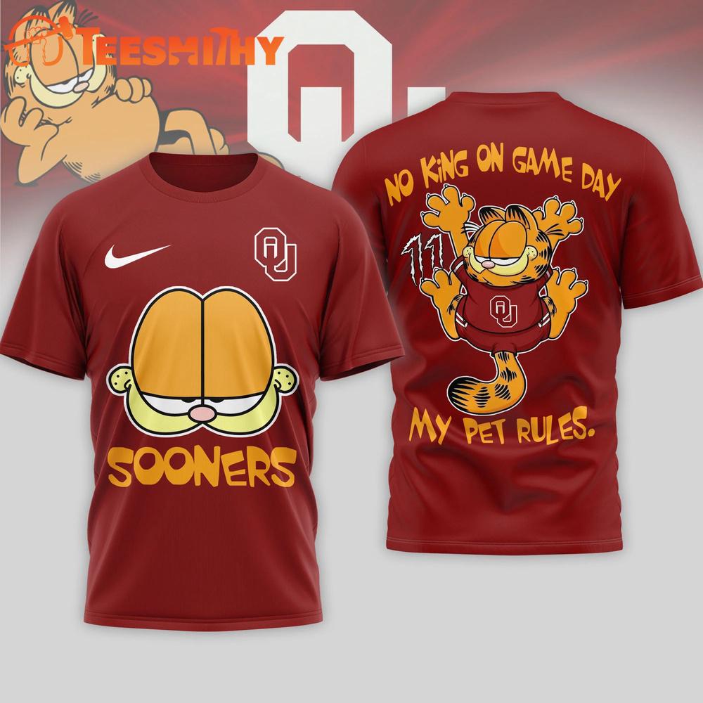 Oklahoma Sooners Garfield NCAA No King On Game Day 3D T Shirt The 3D Shirt is a fashion statement that goes beyond the ordinary. Using advanced printing technology, it brings designs to life with depth and vividness. Crafted from high-quality materials, it offers comfort and durability. The three-dimensional graphics create a captivating effect that’s perfect for casual wear or making a bold statement.