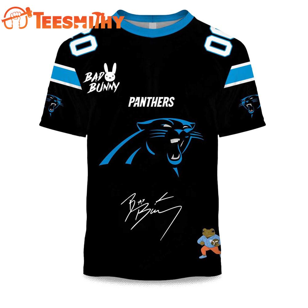 Personalized Carolina Panthers NFL Bad Bunny 2026 Super Bowl LX Limited Edition 3D Shirt The 3D Shirt is a fashion statement that goes beyond the ordinary. Using advanced printing technology, it brings designs to life with depth and vividness. Crafted from high-quality materials, it offers comfort and durability. The three-dimensional graphics create a captivating effect that’s perfect for casual wear or making a bold statement.