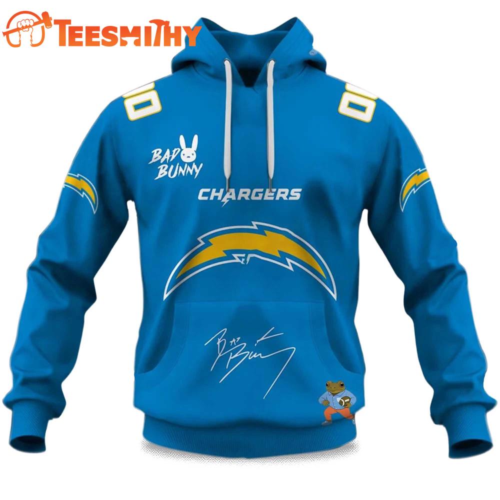 Personalized Los Angeles Chargers NFL Bad Bunny Super Bowl LX 2025 2026 Hoodie Shirt The 3D Shirt is a fashion statement that goes beyond the ordinary. Using advanced printing technology, it brings designs to life with depth and vividness. Crafted from high-quality materials, it offers comfort and durability. The three-dimensional graphics create a captivating effect that’s perfect for casual wear or making a bold statement.