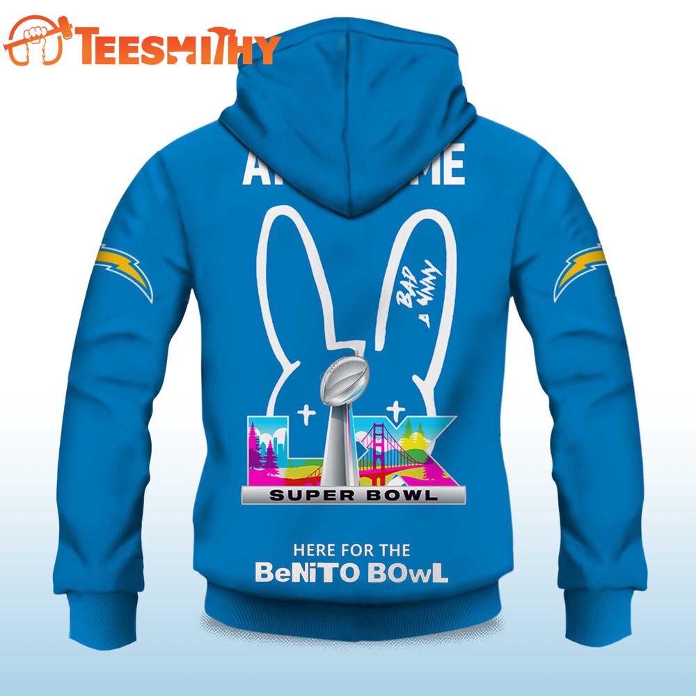 Photos Of Personalized Los Angeles Chargers NFL Bad Bunny Super Bowl LX 2025 2026 Hoodie Shirt