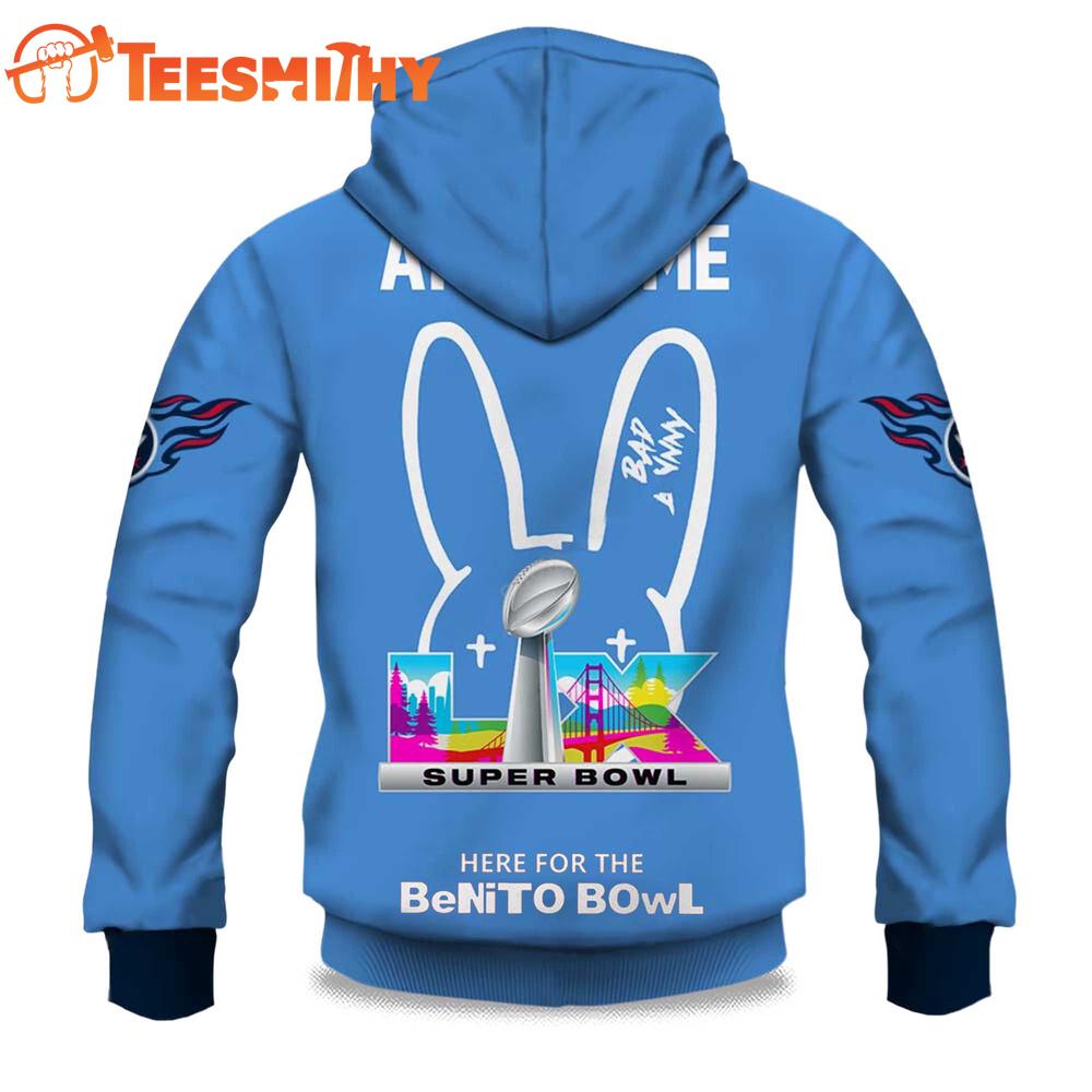 Personalized Tennessee Titans NFL Bad Bunny Super Bowl LX 2025 2026 Hoodie Shirt The 3D Shirt is a fashion statement that goes beyond the ordinary. Using advanced printing technology, it brings designs to life with depth and vividness. Crafted from high-quality materials, it offers comfort and durability. The three-dimensional graphics create a captivating effect that’s perfect for casual wear or making a bold statement.