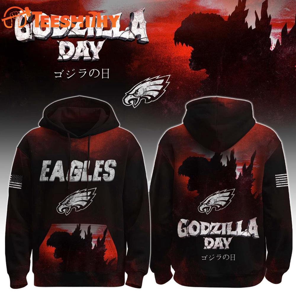 Photos Of Philadelphia Eagles 2025 Happy Godzilla Day Limited New Hoodie Shirt