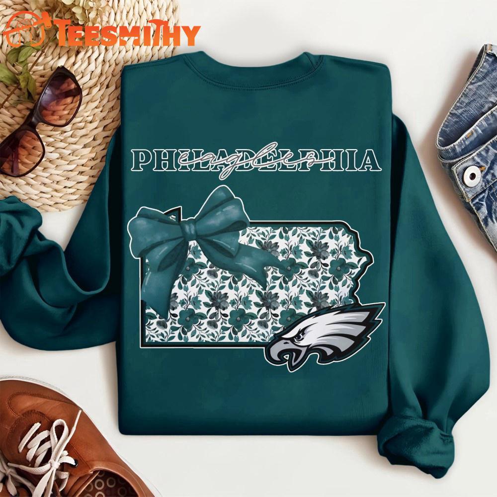 Philadelphia Eagles 2025 NFL Cozy State Bow Sweatshirt The 3D Shirt is a fashion statement that goes beyond the ordinary. Using advanced printing technology, it brings designs to life with depth and vividness. Crafted from high-quality materials, it offers comfort and durability. The three-dimensional graphics create a captivating effect that’s perfect for casual wear or making a bold statement.
