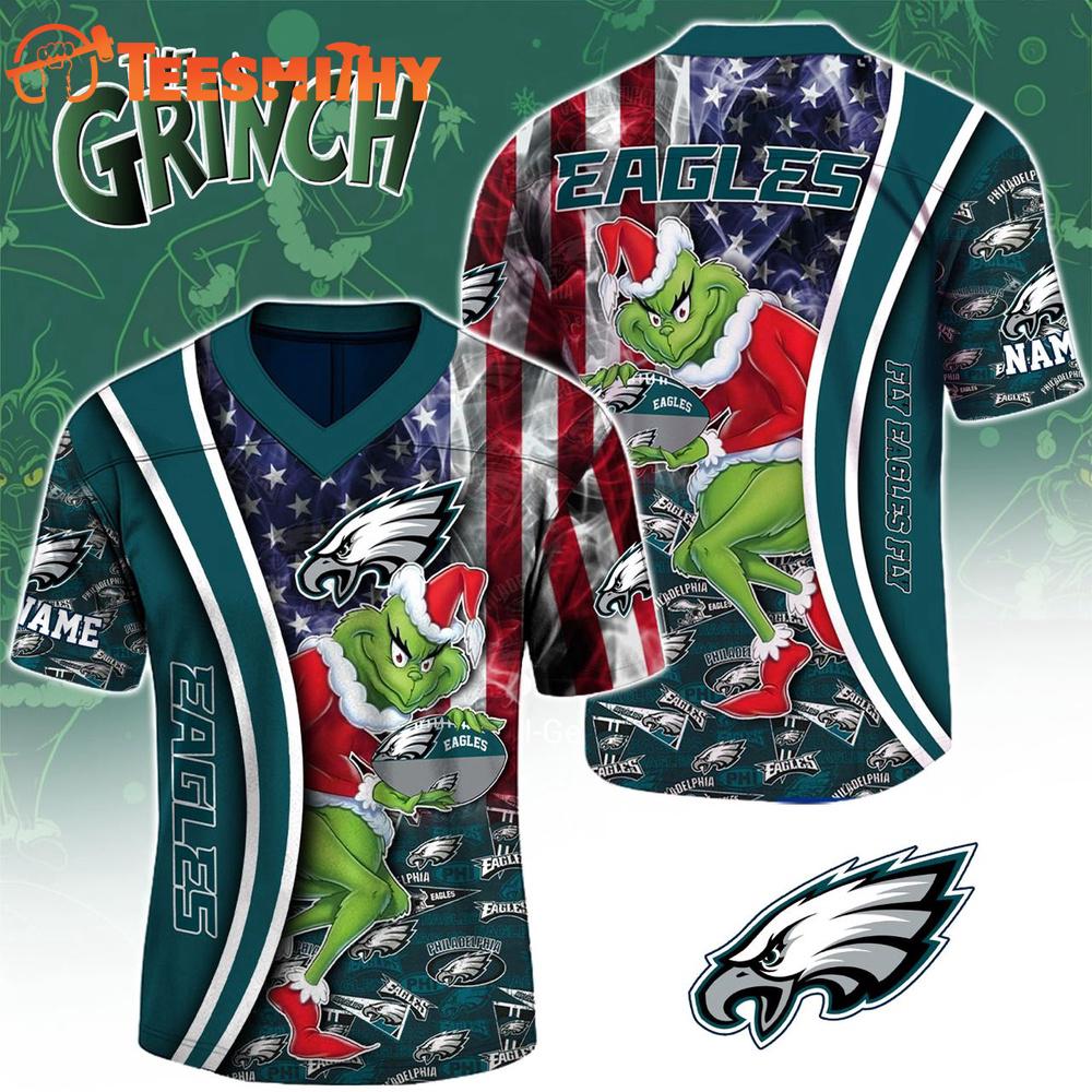 Philadelphia Eagles x The Grinch Christmas Limited Edition Football Jersey Show your team spirit with our custom Football Jersey! Made from high-quality, breathable fabric for maximum comfort and performance. Perfect for game day or casual wear. Personalize with your name, number, or favorite team. A must-have for any football fan or sports enthusiast.