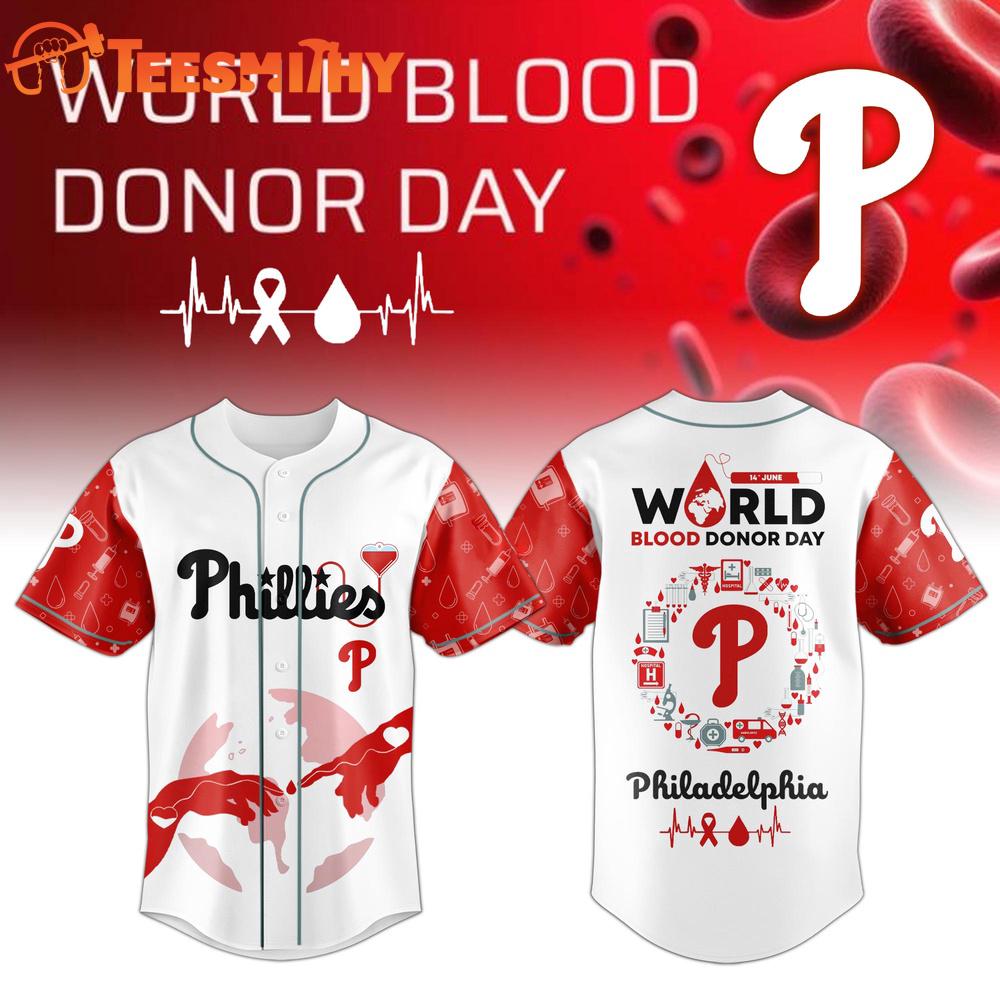 Philadelphia Phillies x World Blood Donor Day Limited Edition Custom Baseball Jersey The ultimate fusion for devoted fans! These unique Jersey Shirt are a must-have for enthusiasts. With premium polyester material, they provide unrivaled comfort and support. Sporting your favorite team’s logo and colors, Jersey Shirt let you showcase team spirit with every step. Perfect as a gift or for yourself, embrace your love for the and experience unmatched style and comfort with Jersey Shirt. Order now and elevate your fan status!