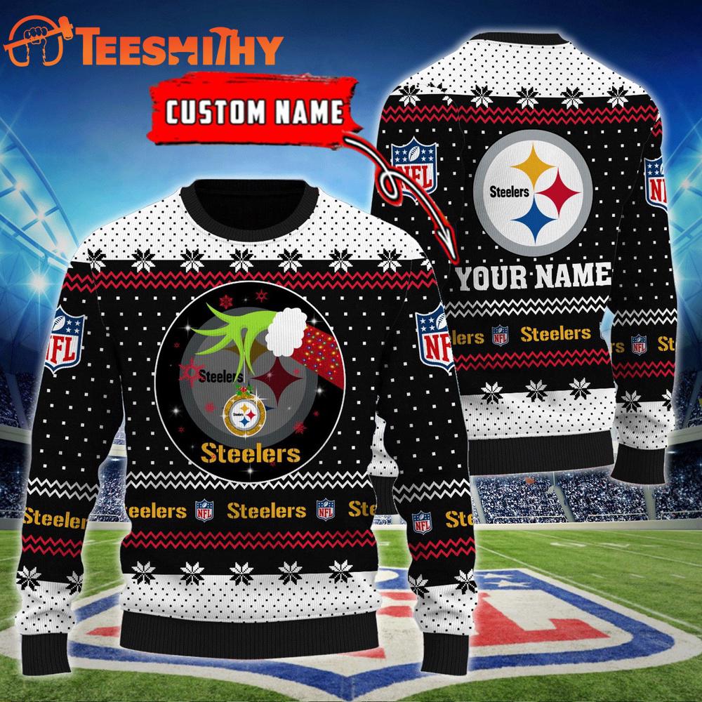 Photos Of Pittsburgh Steelers NFL Grinch Hands Personalized Ugly Christmas Sweater