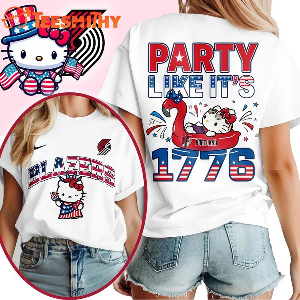 Product details: Portland Trail Blazers 2026 NBA Hello Kitty Independence Day Unisex 3D Shirt