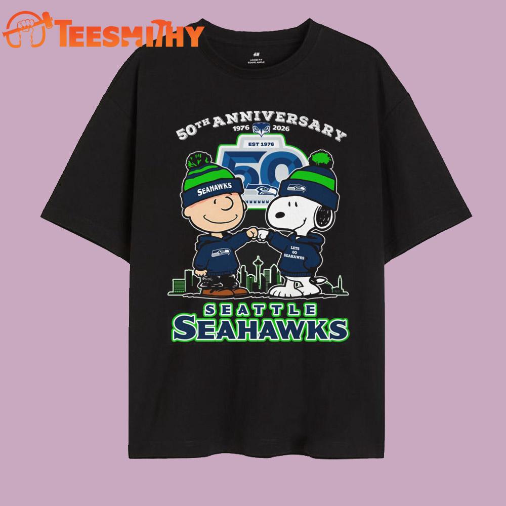 Seattle Seahawks 50th Anniversary 1976-2026 Snoopy Character Christmas T Shirt Introducing our 2D Unisex T-Shirt, the perfect blend of style and comfort for everyone. Made from high-quality, breathable cotton, this shirt features a sleek, minimalist 2D graphic design that effortlessly elevates your everyday look. Its versatile, unisex fit ensures a flattering silhouette for all body types, making it an ideal addition to any wardrobe. Whether you’re dressing up for a casual outing or lounging at home, this T-shirt offers both comfort and a touch of modern flair. Available in a range of colors, it’s the ultimate canvas for showcasing your personal style.