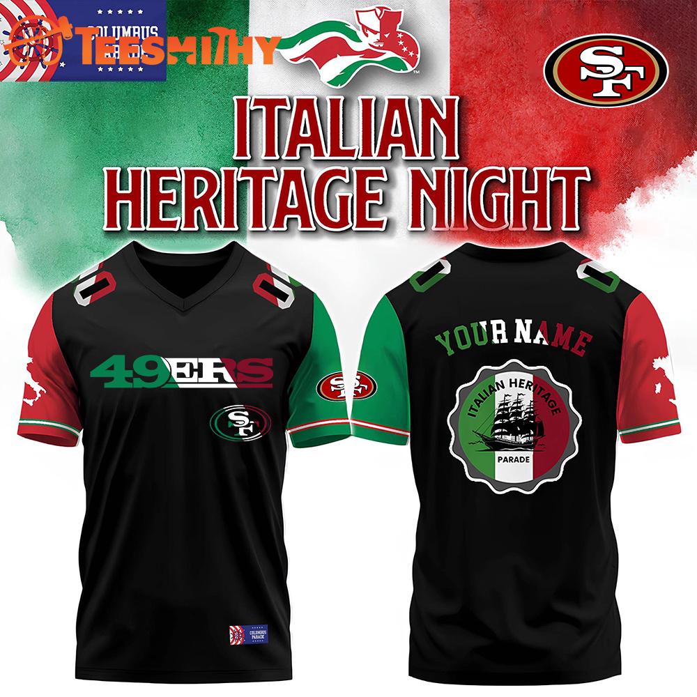 Special Edition 2025 San Francisco 49ers Italian Heritage Night x Columbus Parade Custom Football Jersey Show your team spirit with our custom Football Jersey! Made from high-quality, breathable fabric for maximum comfort and performance. Perfect for game day or casual wear. Personalize with your name, number, or favorite team. A must-have for any football fan or sports enthusiast.