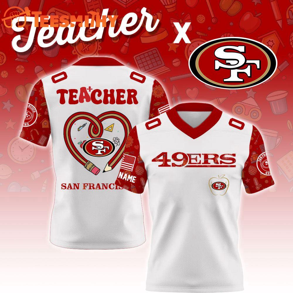 Special Edition 2025 San Francisco 49ers x Teacher Appreciation Custom Football Jersey Show your team spirit with our custom Football Jersey! Made from high-quality, breathable fabric for maximum comfort and performance. Perfect for game day or casual wear. Personalize with your name, number, or favorite team. A must-have for any football fan or sports enthusiast.