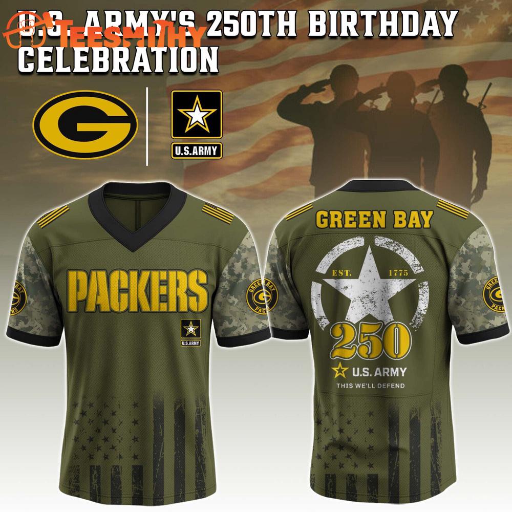 Special Edition 2025 U.S ARMY 250TH Birthday x Green Bay Packers Football Jersey Show your team spirit with our custom Football Jersey! Made from high-quality, breathable fabric for maximum comfort and performance. Perfect for game day or casual wear. Personalize with your name, number, or favorite team. A must-have for any football fan or sports enthusiast.