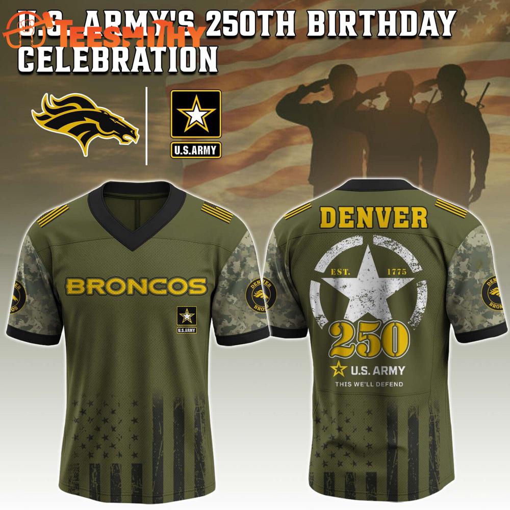 Photos Of Special Edition 2025 U.S ARMY’S 250TH Birthday x Denver Broncos Football Jersey
