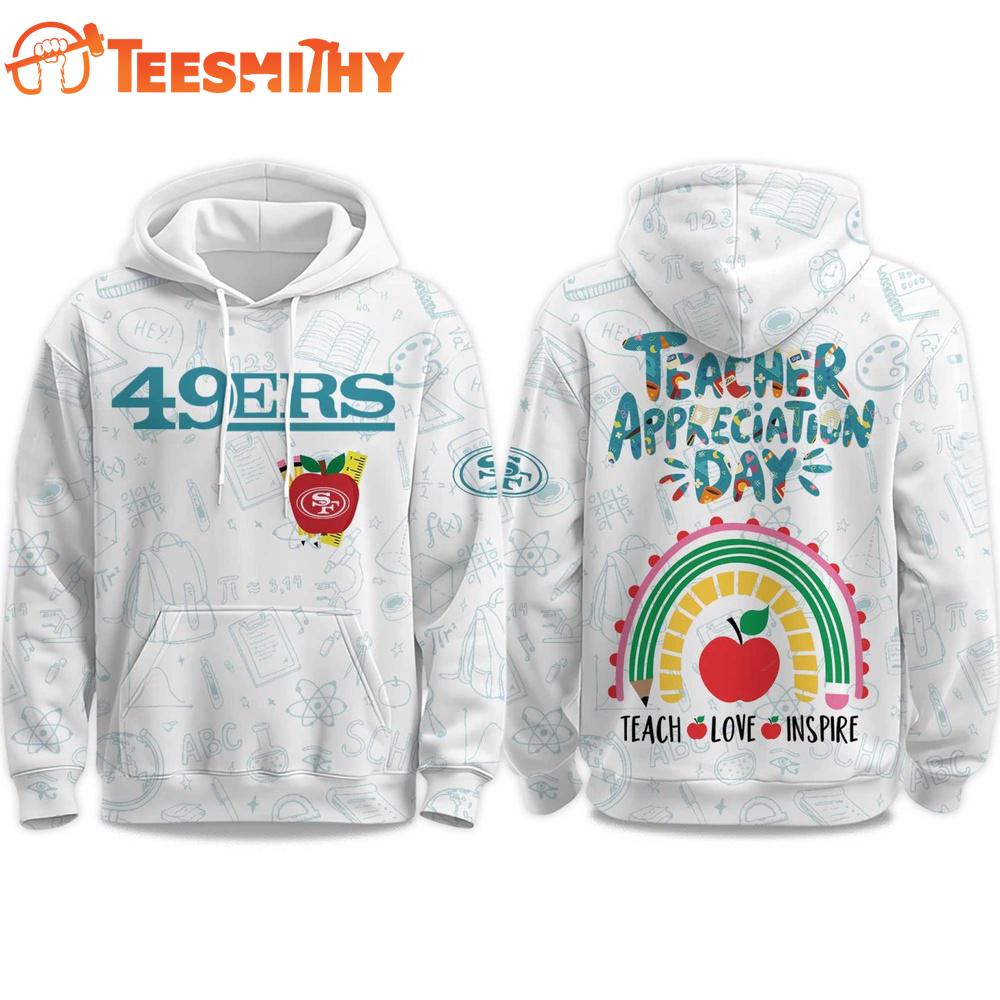 Special Edition 49ers Teacher Appreciation Day Hoodie Shirt The 3D Shirt is a fashion statement that goes beyond the ordinary. Using advanced printing technology, it brings designs to life with depth and vividness. Crafted from high-quality materials, it offers comfort and durability. The three-dimensional graphics create a captivating effect that’s perfect for casual wear or making a bold statement.