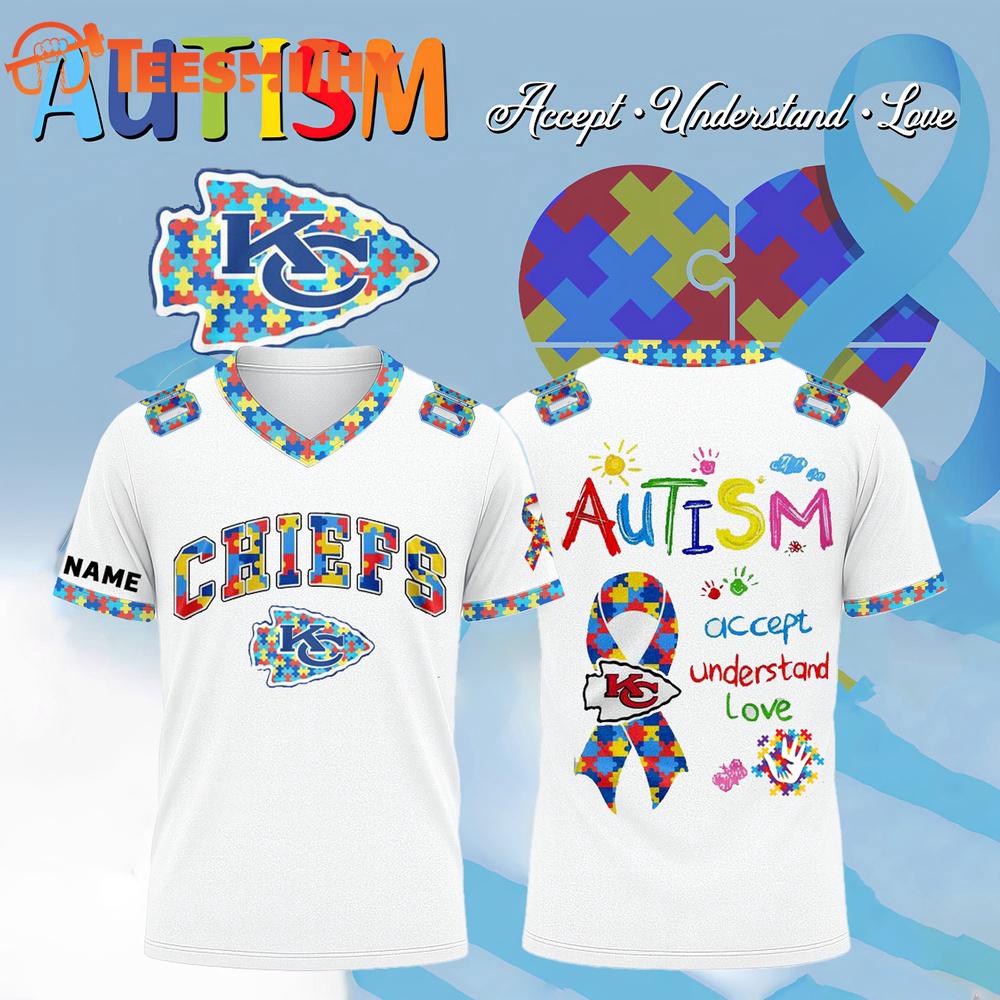 Special Edition Kansas City Chiefs x Autism AcceptanceAwareness Custom Football Jersey Show your team spirit with our custom Football Jersey! Made from high-quality, breathable fabric for maximum comfort and performance. Perfect for game day or casual wear. Personalize with your name, number, or favorite team. A must-have for any football fan or sports enthusiast.