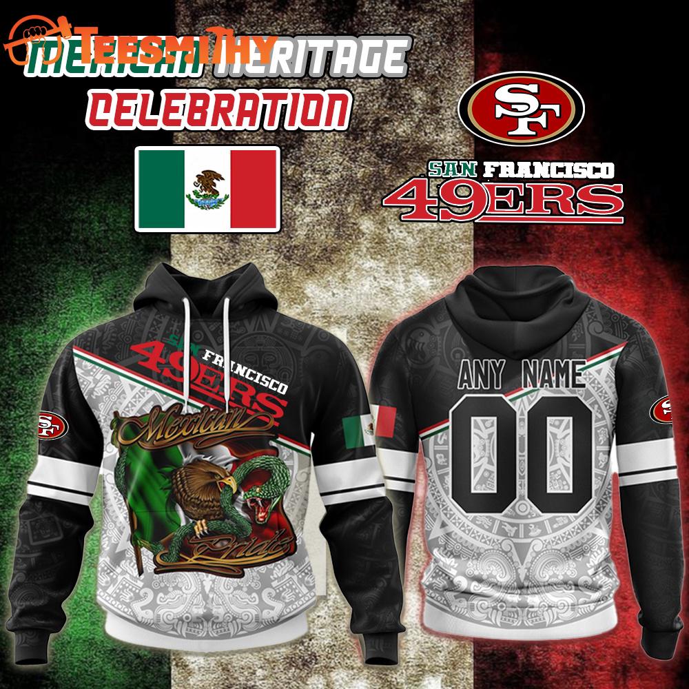 Special Edition San Francisco 49ers x Mexican Heritage Celebration Custom Hoodie Shirt The 3D Shirt is a fashion statement that goes beyond the ordinary. Using advanced printing technology, it brings designs to life with depth and vividness. Crafted from high-quality materials, it offers comfort and durability. The three-dimensional graphics create a captivating effect that’s perfect for casual wear or making a bold statement.